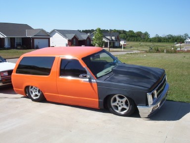 shaved doors roll pan phantom grille!!! supra taillights, shaved body line,roof rack, welded tailgate shut, blah blah blah!! wuz in a wreck dont have the pics from when it wuz orange just the in between and rimer pics lost the before!!!