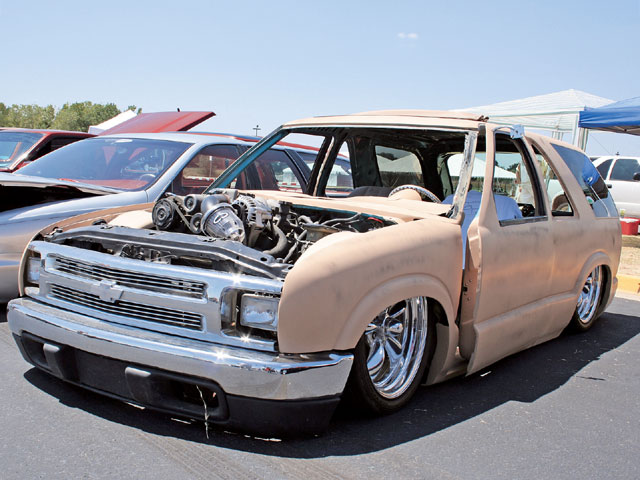 shaved : front corners, antenea, mirrors, door handles, rain gutters, Taillights, 3rd brake light, s10 rear rocker moldin in with smooth grant fab rollpan, 13 inch leds, frenched licence plate in tail gate, suicide doors and some other stuff WWW.PUGZKUSTOMZ.COM