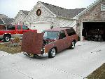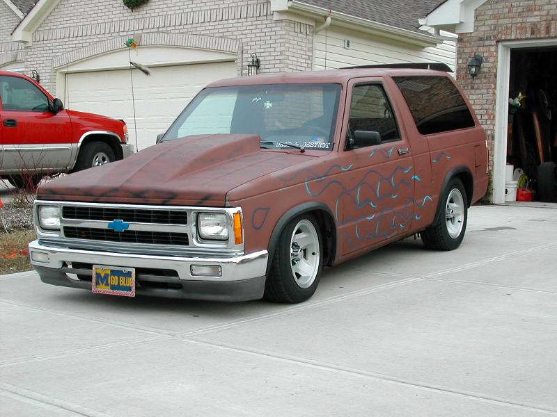 working on it,shaved roof rack,role pan,shaved cowl,gmc grill,french tag in tail gate,toyota bumper and valance,suicide hood
