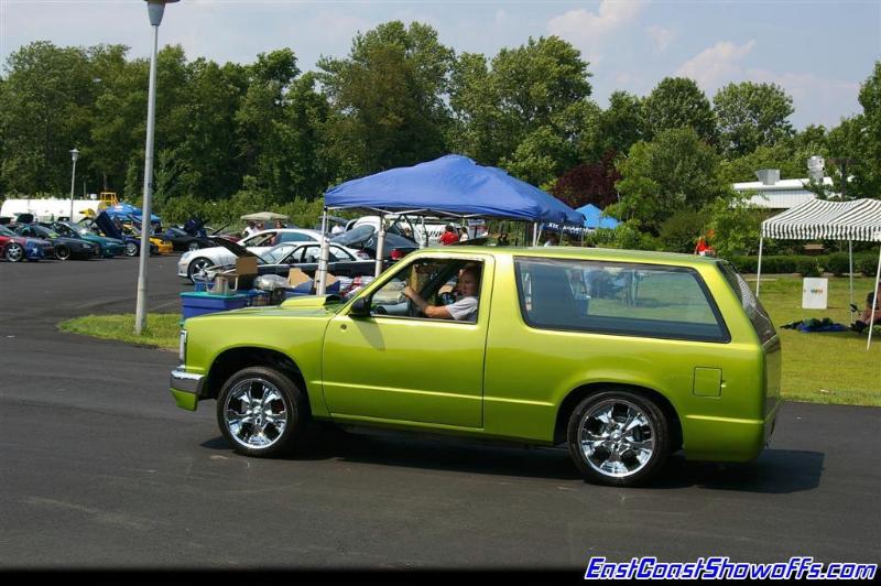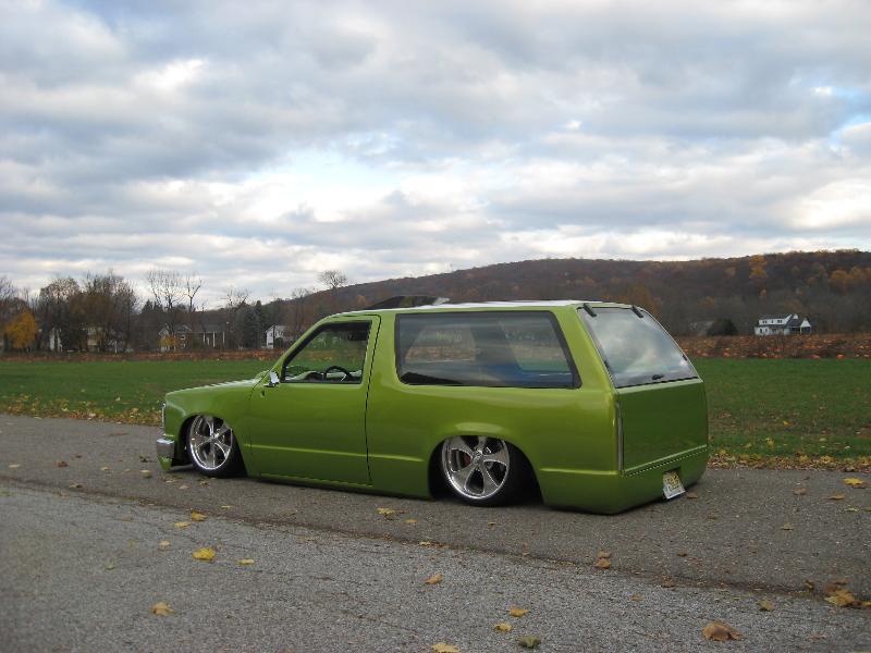 shaved: spare tire rack, handles, roof rack, body lines, emblems, roof seams, wiper cowl. Caddilac tail lights, 2nd gen s10 roll pan with 2nd gen rear s10 bedsides, suicide doors, shaker hood scoop, metal rocker extensions, toyota bumper, sunroof, all clear glass, much more but i forget...