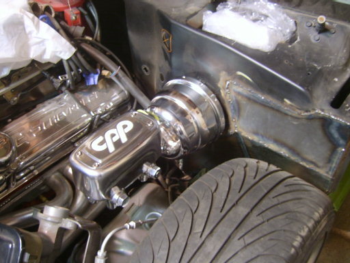 chevy 350 v8, edlebrock performer 600 cfm carb and edlebrock performer intake, lunati cam, headman headers,march billet engine puleys, hig output alt, polihed aluminum water pump, be cool rad, mallory hei, stage 2 bowtie overdrives 700r4 trans, 2600 stall converter