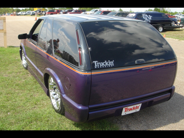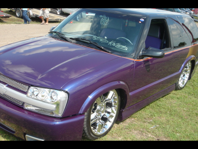 Radar Blue and Midnight Graphite two tone paint, Fully shaved, Trailblazer headlights and grill, full size Chevy SS bumper cover, custom LED Taillights,