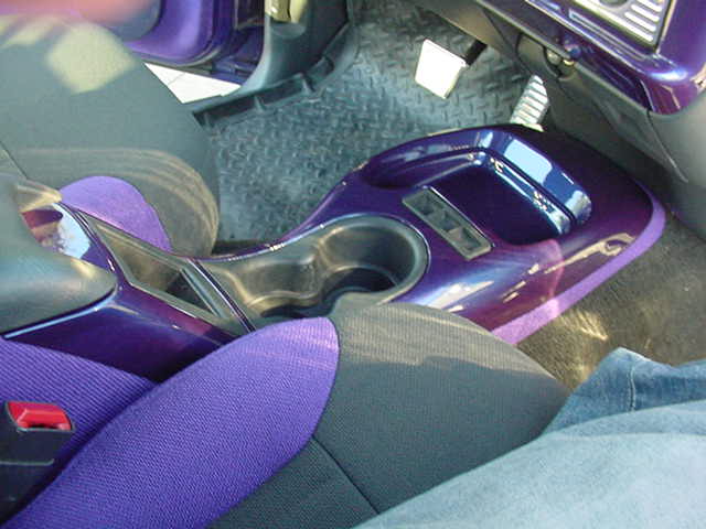 purple and charcoal tweed, billet specialties steering wheel, paint and a lot of billet