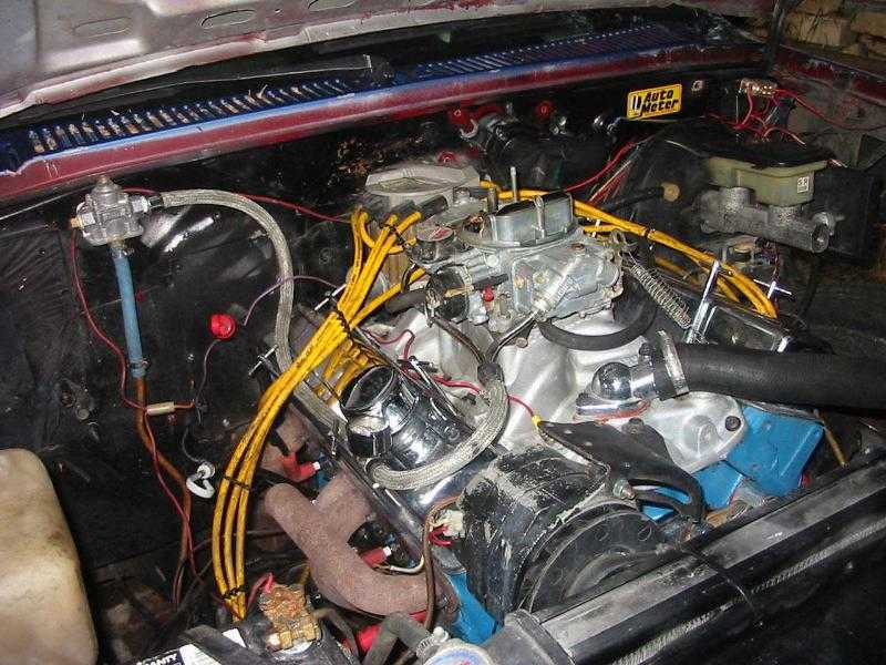 383 stroker, 296h comp cam, kb pistons,pete jackson timing gears,edelbrock rpm intake, 1-in wood spacer,holly 670, some chrome,accel,heddman headers, 3-in x-pipe with bullets, holley blue fule pump, 16 gal fuel cell,afr heads soon