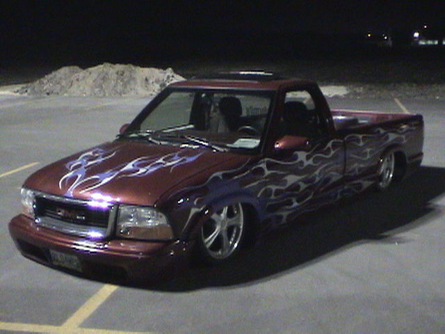 3 1/2" "stock floor" body drop, no tubing of the fire wall, shaved antenna, hood squiters, third brake light, tailgate handle, molded roll pan, gas filler door and door handles, 2000 GMC front end conversion, stock blower box with all working heat and defrost etc, for them cold cruising nights, this winter, shave cab filler pieces, and tailgate combo to be welded with stock taillights.