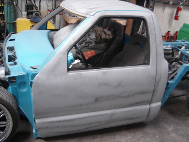 shaved doors, wiper on ps, roll pan, hightec leds, smoothed bed inside and raised floor, smoothed back of cab and front of bed wall. cowl hood, 2000 sonoma front end. shved mirrors, tail is shaved but functional to access valves. bed floor has acces doors for fuel and battery.