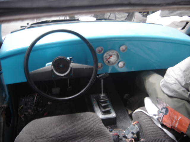 Custom steele dash with 5 white face gauges, steering column from 86 s10 blazer. column and dash painted to match