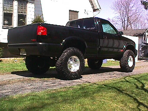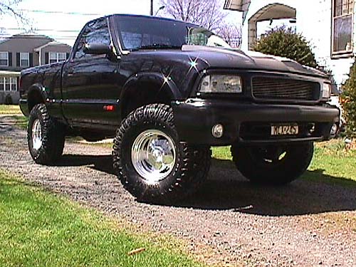1994 S-10 SS trim with 97 Sonoma grill; 00 Envoy bumper cover; billet grill insert; shaved tailgate; molded Sir Micheals pan; Checkmate FX Soft hinged cover; SS mirrors; PIAA foglights; 20gal fuel cell sunk into bed floor; Optima yellow top in the bed