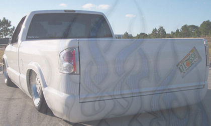 Cal-View mirrors, shaved tailgate, shaved handles, Euro Tails.