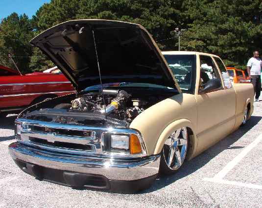 4.3 Vortec w/ a 40 series Flowmaster...Firewall is shaved, all wiring cleaned up and rerouted by Super D, electric fan, chrome radiator overflow, cut down import air intake...