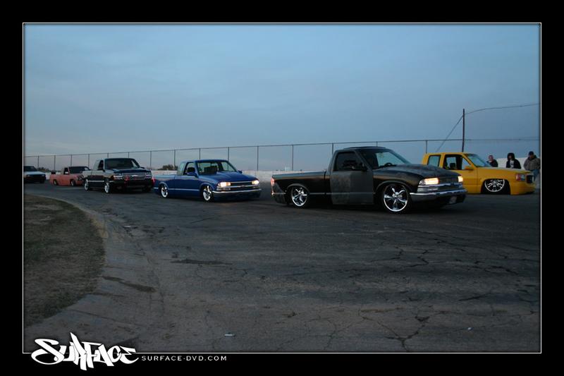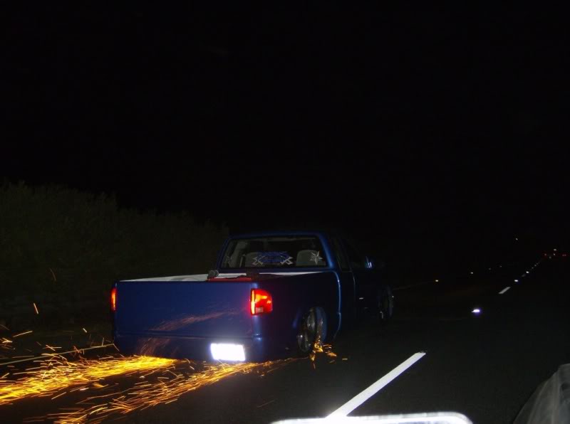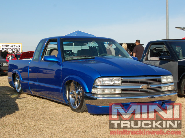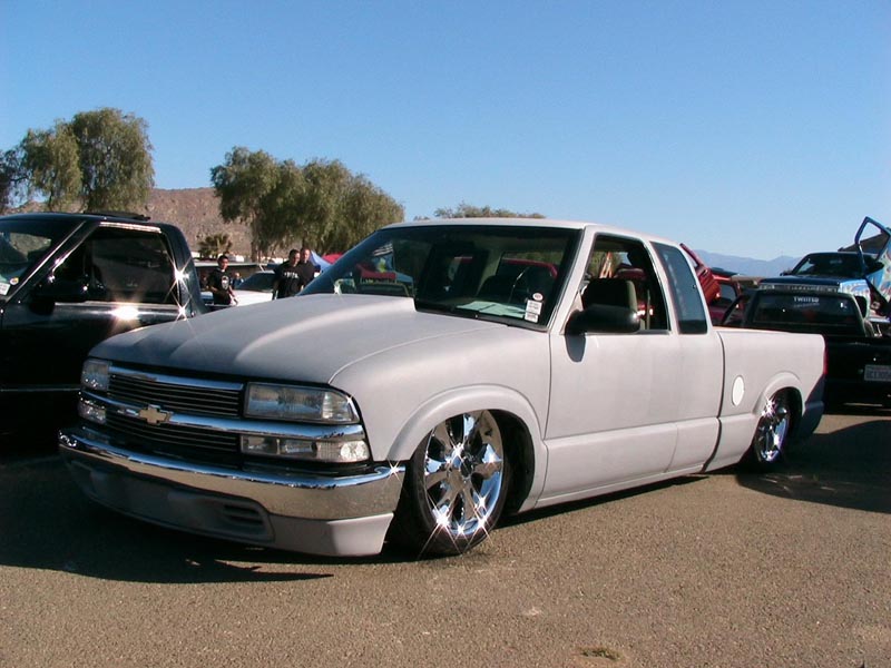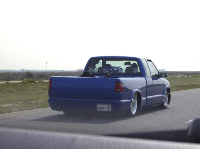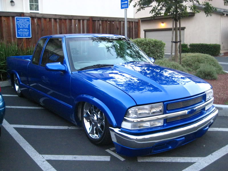 Shaved:---hood squirters, door handles, tailgate handle, molded Sir Michaels roll pan, bedrail corners, rocker seam, 3rd brake light, gas door, antenna. motorcycle gas filler in the bed rail. Raised bed floor 5" updated front bumper and valence. Subaru WRX blue paint, only the firewall was left OEM white. Everything done by me.