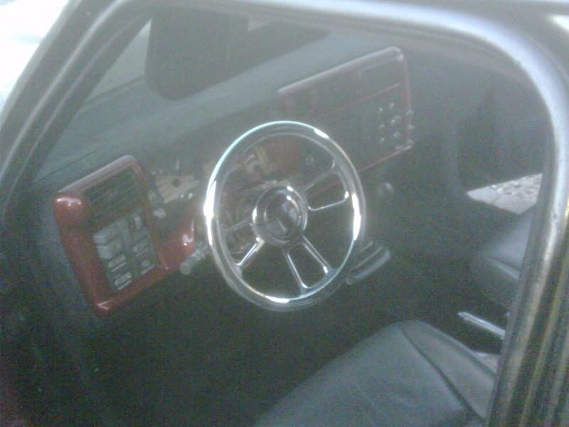 alll black suede with some painted stuff n billet stuff, double din TV, billet steering wheel, integra GSR leather buckets