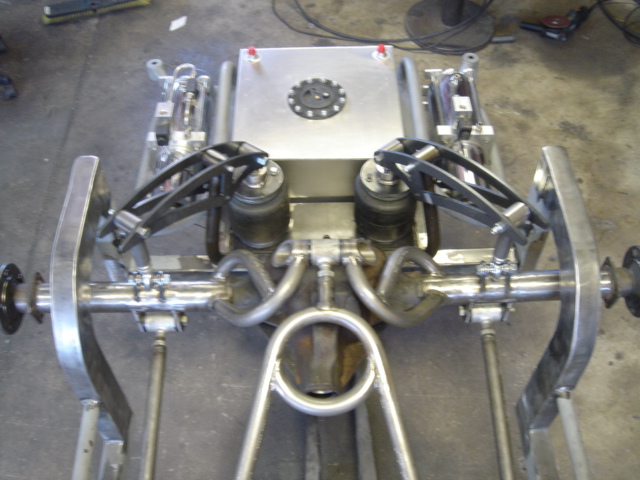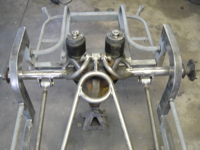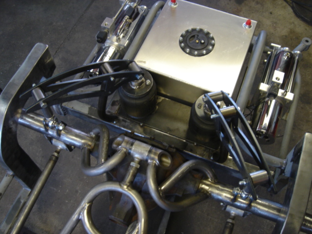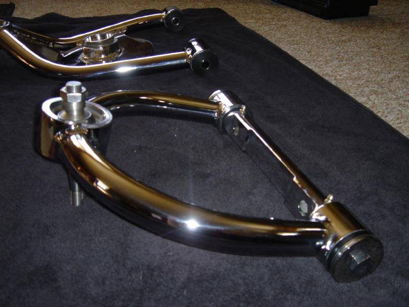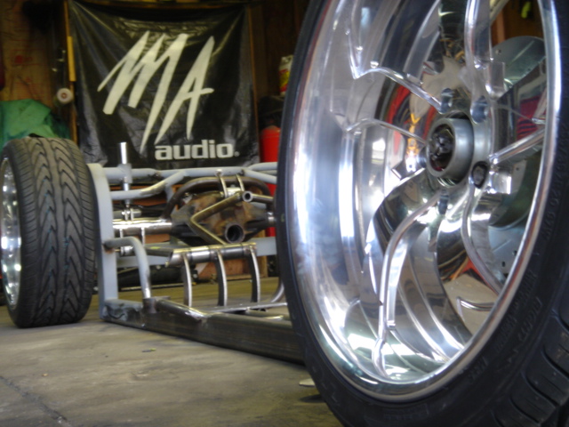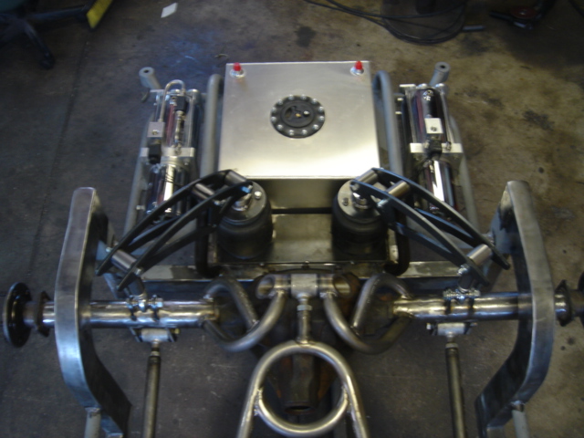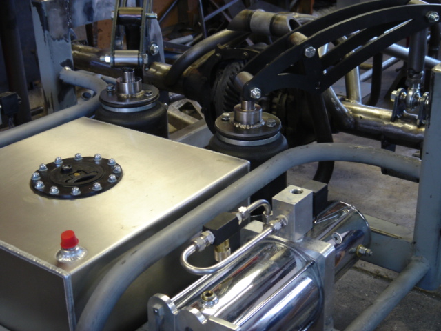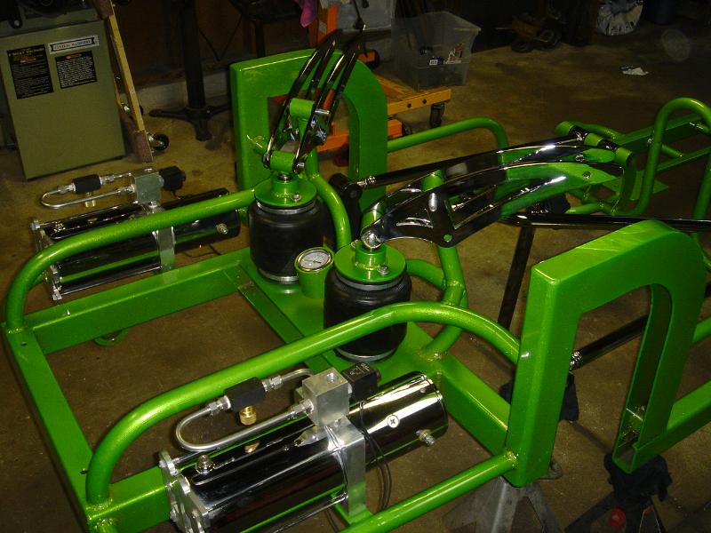 2 pump Hydro setup, 2 dumps. Hydro/air setup at all 4 corners. The air bags will be filled at a set PSI, which will allow for an adjustable spring rate, so i can adjust it to hard or soft depending on what kind of ride i want that day. The rear is in a cantilever form, with the cylinders flipped upside down..... Control arms by barelylegalfabrication.com