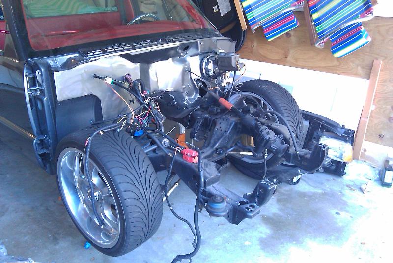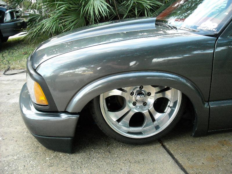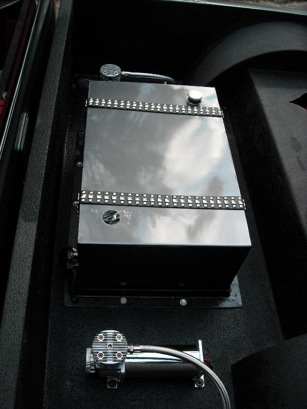 Shaved, and sprayed Dodge Dakota RT Gun Metal Grey. Tailgate has been cut and shaped to show the rear bag setup through the gate(done over 2 years ago) Bed is smothed out and houses the Seriously Insane Full cell and to Viairs