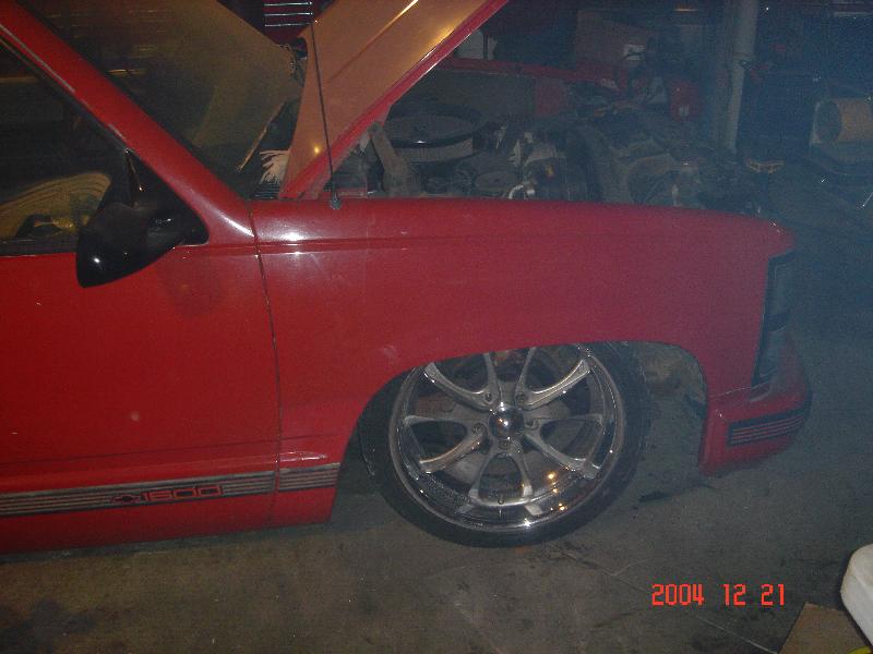 semi stock floor body dropped 5 in. with a stock hood shaved squirters antenna fuel door, tailgate handle, and third brake light.