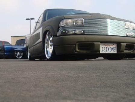 Shaved everything, fullskin cali combo rear w/ '89 smoked caddy tailights, pinstriping, arlen ness motorcycle mirrors, fully sheetmetaled bed