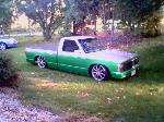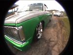 sold. shaved handles, antenna,emblems,tailgate, & front bumper, phantom grille, tailgate& rollpan molded to body, License plate box in center of tailgate skin, 3rd brake light above license plate, Honda del sol green & chrysler silver paint seporated by black tribal flames Clear corner & bumper lenses