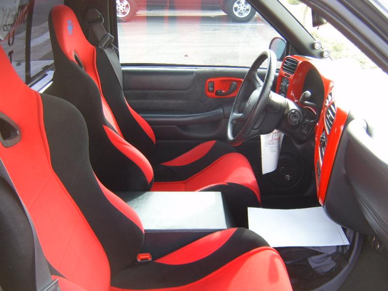 Painted dash, red/black racing seats, custom box.