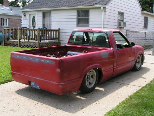 1/2 in. single port 2500s bags up front, 2" beltech drop spindles, 1/2 in. Xtreme GC 250 valves, 12 gallon tank, 200 psi viar compressor, 1/2 in. single port 13" 2600s out back, tri 4-link, 10 in. notch