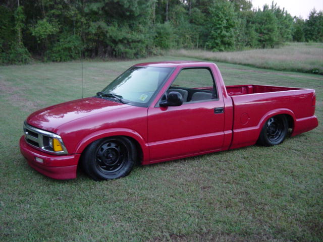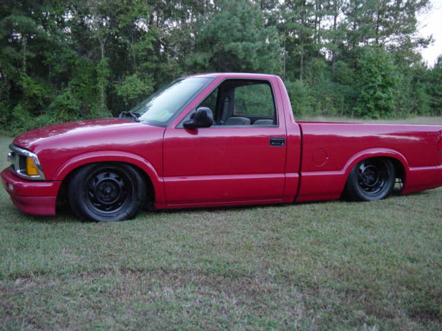 2 inch dropped spindles, bagged front, mono-leaf back, 4 inch angled blocks, airshock, 2 5 gallon tanks, 2 viair 450 comps, and 3/8 smc valves.