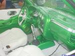 FULLY PAINTED DASH WITH MOLDED KP GUAGES. BILLET DOOR BEZALS, BILLET OH SH*T HANDLE, BILLET DASH VENT, BILLET SPEAKER GRILLS AND BILLET (BRASS KNUCKLE) SHIFTER. PAINTED DOOR PANELS AND DYNAMAT THROUGH OUT THE CAB. MORE BILLET PIECES TO COME. WHITE CARPET & KRIST KUSTOMS STREAMLINE STEATS TO BE WRAPPED IN WHITE LEATHER.