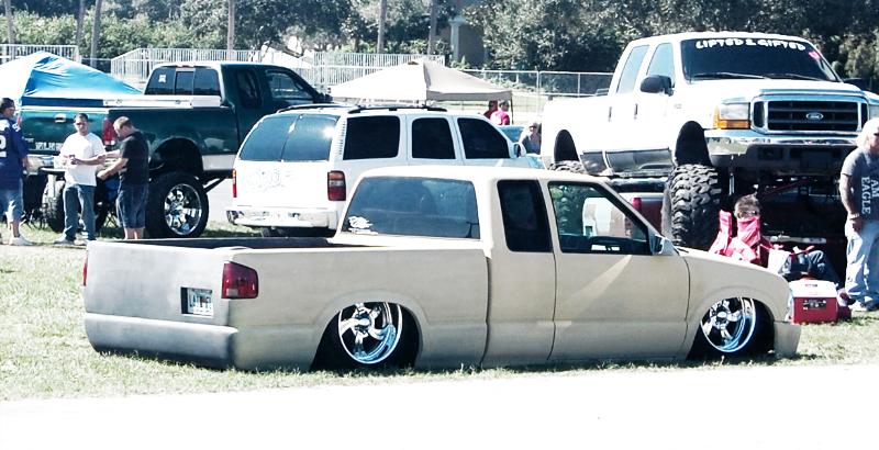 2500's up front 2600's out back. CAN-DO SPECIALTIES reverse 4-link. 2 viair 380's , 7 Gallon Tank. BYC tubular upper and lower control arms, 2" Drop Spindles. 4" Bodydrop.