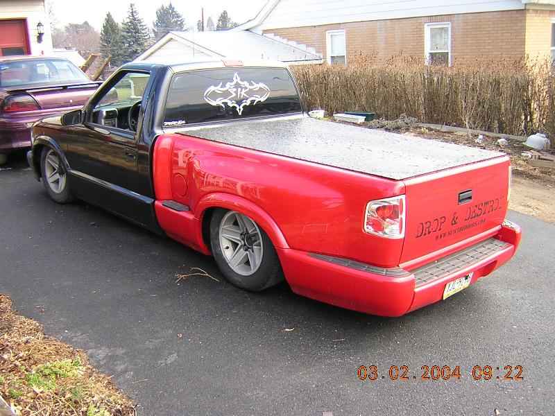 Stepside bed, ECC smooth step shaver, 98+ front end conversion, chrome bumper w/ 4x4 valance, chrome grill, polished billet insert and bowtie, clear corners, Halo projector headlights, SS mirrors, shaved (doors, antenna, 3rd brake light & gas door), Checkerpro tonneau cover, billet license plate frame.