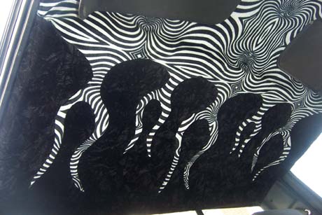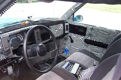 zebra like stuff wit crushed velvet that I did when I got bored thas the main thing then flame billet pedals flame rear view mirror and some other lil stuff