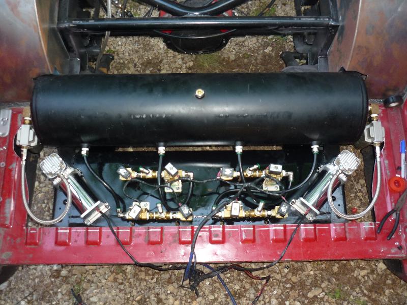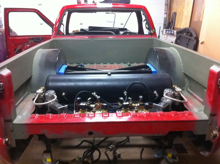 Firestone Bags with 4 1/2 SMC Valves and 4 3/8 SMC Valves. 4 Link with bags behind the rear end.