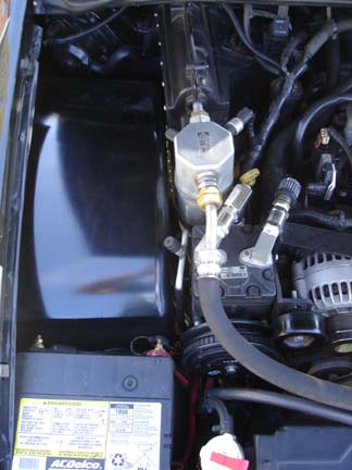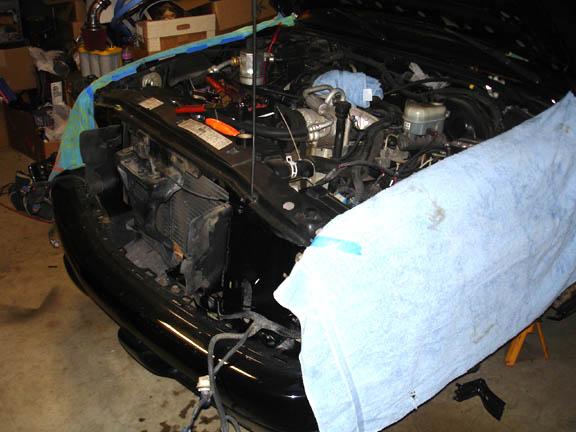 V6, modified stock a/c, swapped 93 manual brake booster, relocated fuseb box and ECU... the norm.