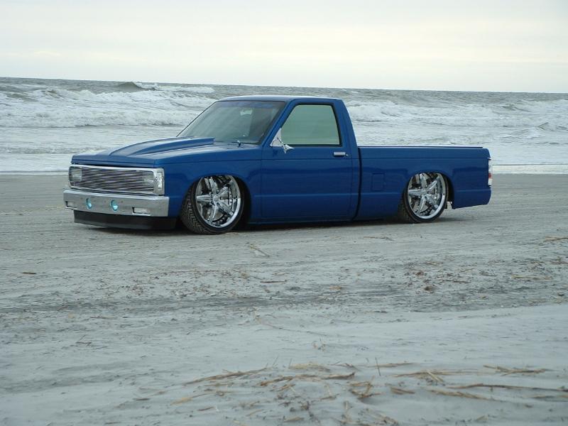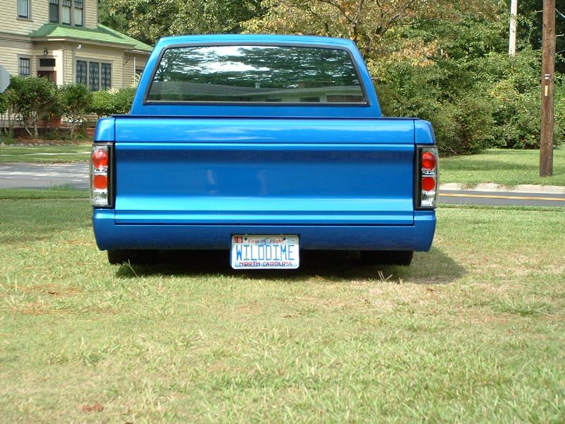 Debadged, shaved tailgate handle, molded rollpan, frenched antenna, phantom grille, smoothe chrome bumper w/ fog lights, Arlin Ness side mirrors, Goodmark cowl induction hood