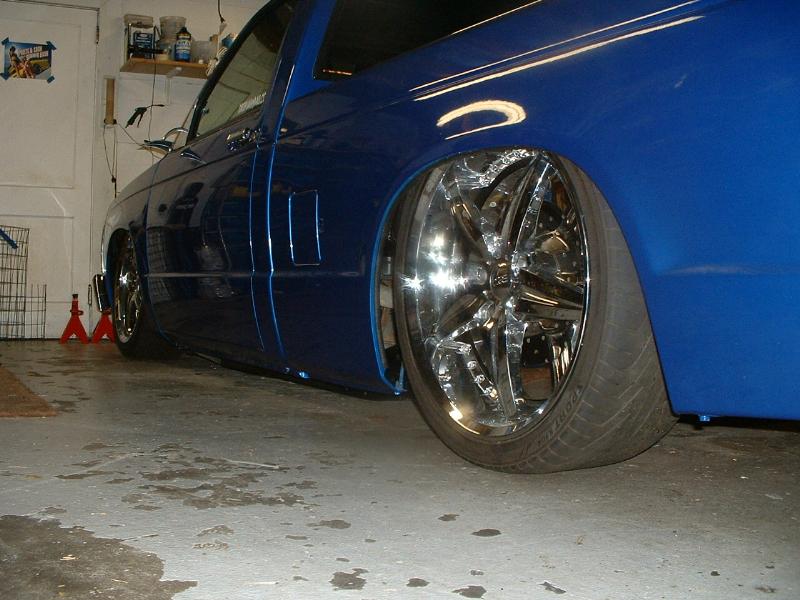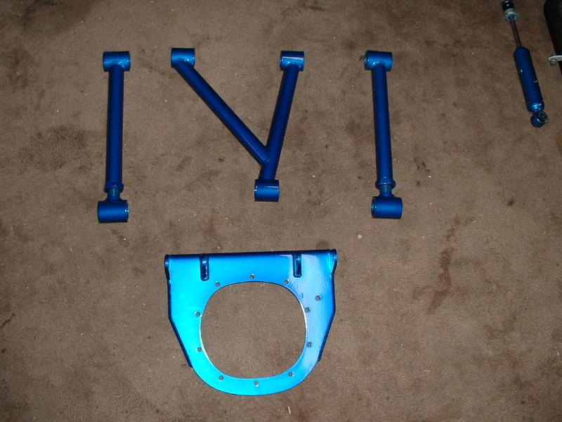 4 bags, 8 1/2 valves, 2 450 Viair Compressors, 2 chrome 5 gal tanks, # Link from SUICIDE DOORS that has been powder coated kandy blue