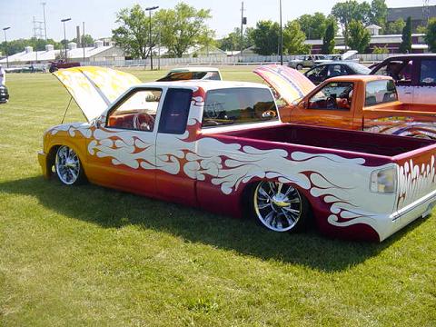 lights maltese cross mirrors. and a goodmark cowl induction hood. Molded in roll pan. CUSTOM BED PAN AND SHOCK MOUNTS, flamed grille inserts,color matched spray in bed liner