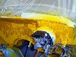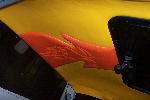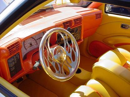 Totally custom interior,layed out in yellow and orange. FLAME MIRROR FLAME HANDLES