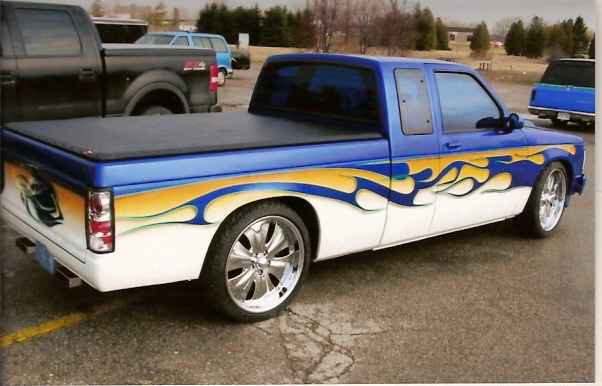 a phantom grill and tilt hood. Blue and White with Tribal flames