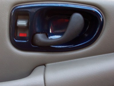 Light Gray, Split bench 60/40 with arm rest. Viynl Floor. Painted Indigo Blue dash bezel with shaved vent embelems (open,close arrows.) Painted Indigo Blue door handle bezels.