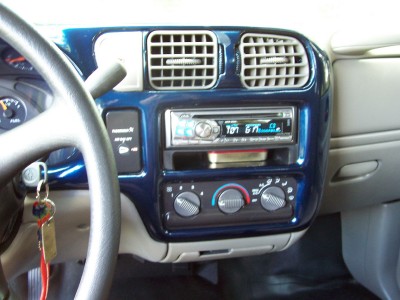 Indigo blue, with shaved moldings and emblems, clear turn Signals, Billet anttana, Painted front bumper...no that part is not stock! 20% window tint by Ryan SSM name Fatload...Thanks alot for the good price. All Blue lights in front.