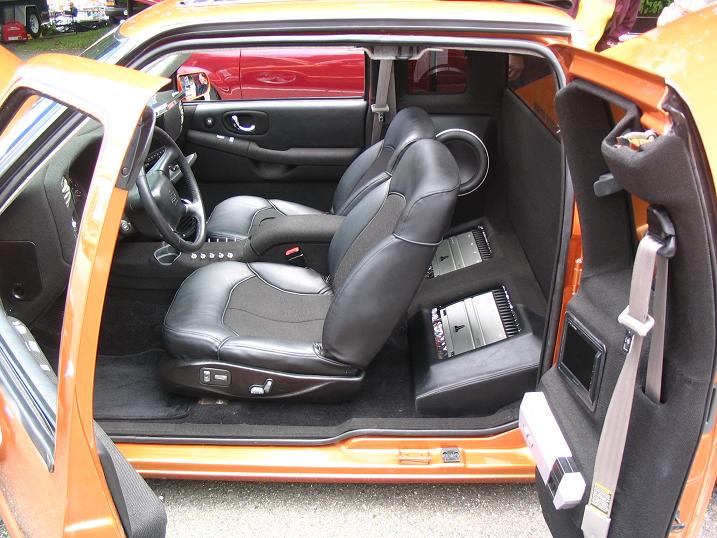 full custom hand stitched tweed and vinyl. chopped power blazer seats, billet everything. relocated climate contorls, custom console, door panels, 3rd door and dash. custom bed.
