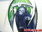 shaved, LED tails, sliding rag, RAW smooth wiper cowl, grasshopper green/white with blue shimmer pearl -