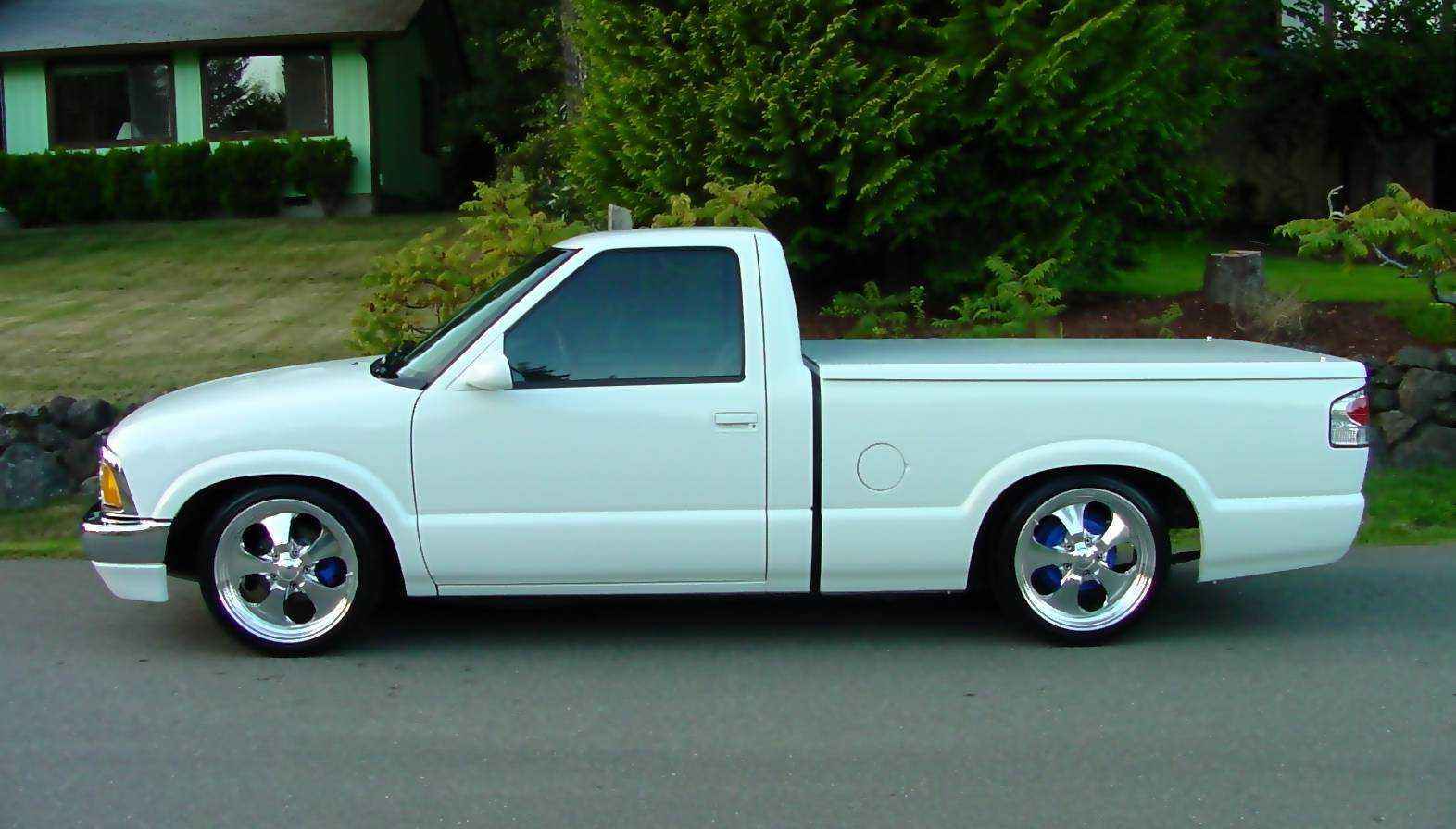 97 blazer composite headlights and chrome grille, billet emblem, 2000 s-10 chrome front bumper and painted airdamn, relocated stock bumper turn signals and mounted on the front framerails, PIAA foglights, sshaved antenna and tailgate with relocator kit, Street Scene mirrors, altezzas (i know they are played out, but clears are just asking for trouble), Stockland tonneau cover w/carpet kit in bed, rollpan