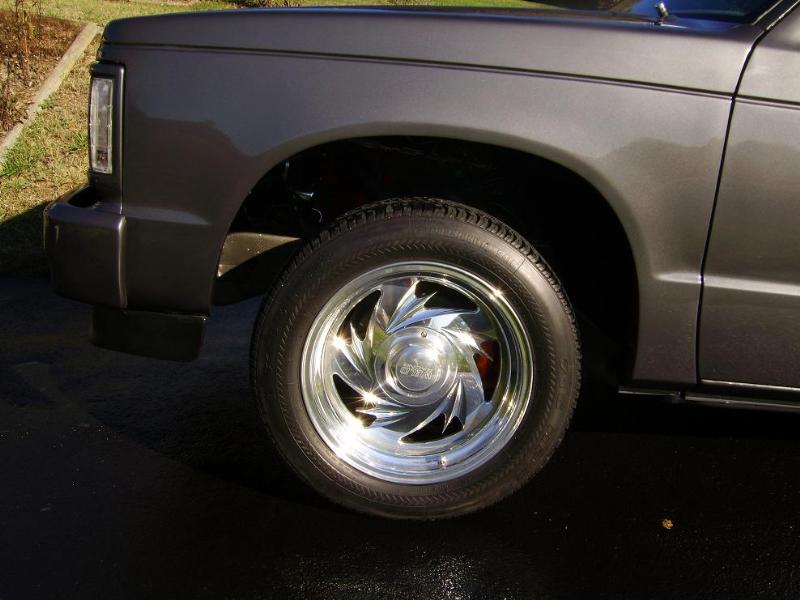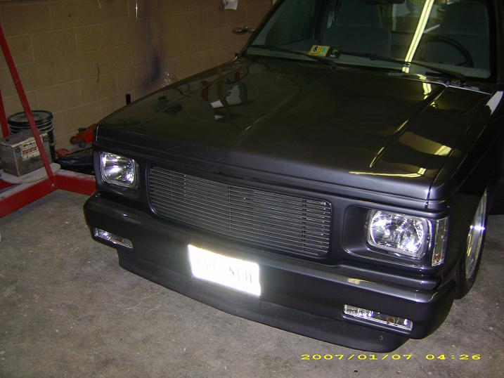 Stock gas door moved inside the bed, sheet metal'd bed walls and oak plank bed floor. 92 gmc jimmy grille w/billet insert