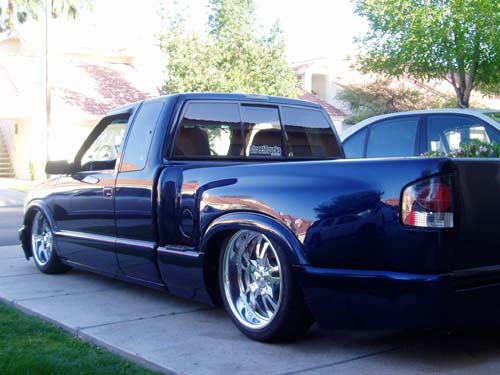 color matched-ss electric mirrors, door handles, front grill bezel, billet grill, billet bow tie, tyc cf tails, shaved gas door, shaved tail gate handle, shaved front step pads, shaved rear steps, roll pan, smoothed out bed, color matched washer squirters, apc diamond healamp housings, inpro diamond clears, custom led third brake light, *in process of body drop*