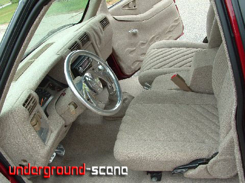 Fully custom oatmeal tweed interior including dash, door panels, window pillars, kick panels,