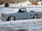 6-3/4" body drop. still in the project stage. Recently primed it but have to touch up the shaved body lines and cut the rockers off and 3/4 of the door off as well.