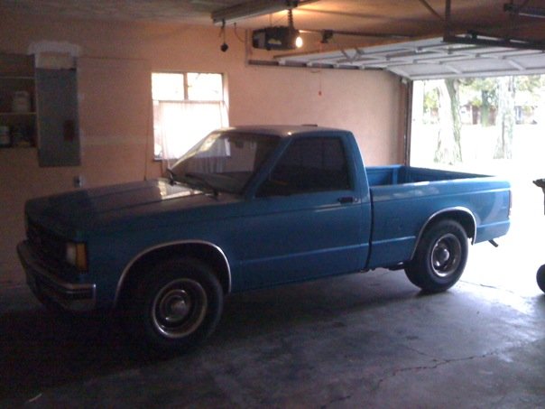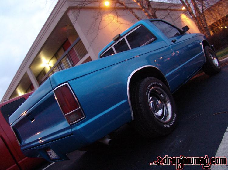 bright blue paint, gay plastic roll pan, stock/sleeper look, tinted windows, update: small dent in back corner of bed.