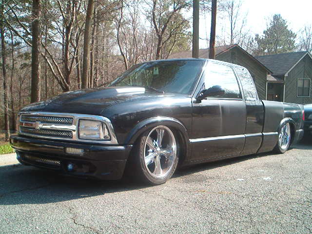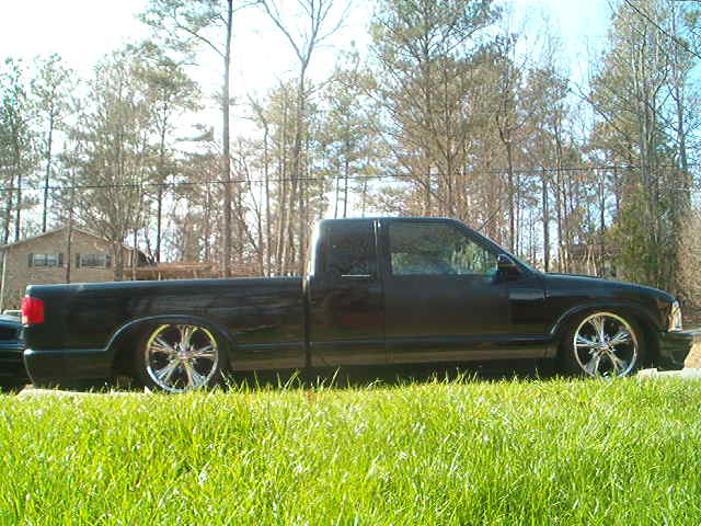 BLACK WITH 50% PRIMER, FULLY SHAVED: ANTENNA, WIPER PISSERS, DOORS TWICE, 3RD BRAKE LIGHT, EXT. CAB LINES, GAS DOOR, FULL CALI SKIN COMBO, WITH LINCENSE BOX IN CENTER OF TAILGATE, STOCK TAILLIGHTS. 95 BLAZER CONVERSION FRONT END, CUSTOM CLEARED CORNERS IN COMPOSITE HEADLIGHTS, CHROME SPEED GRILLE INSERTS, 2ND GENERATION 2" COWL, TINTED WONDOWS, 18'S, BAGGED