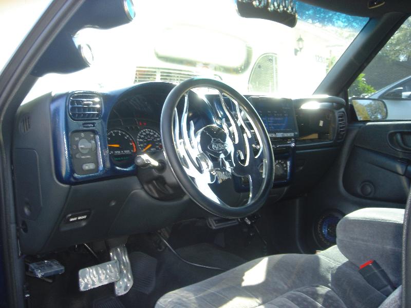 trends billet rearview, pedals, shifter. B.A.D steering wheel w/billet adaptor, sony head unit with some kick ass tweeters