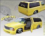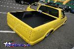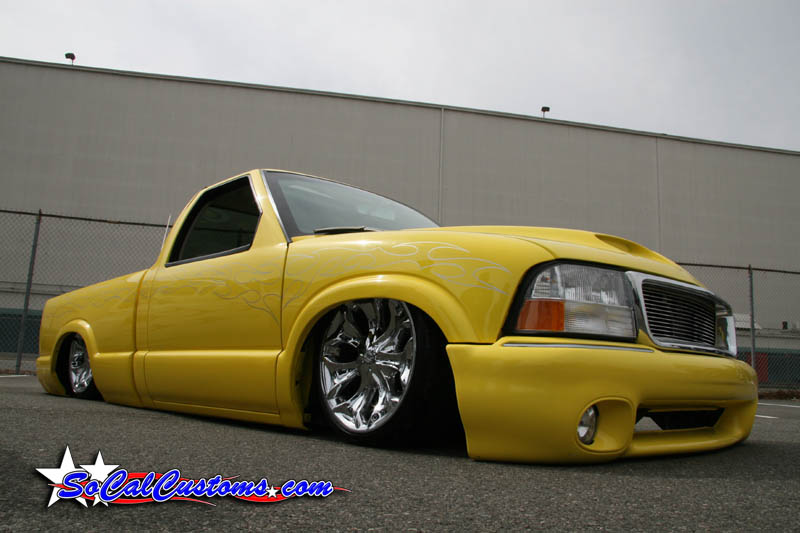 Lemon ice Yellow, Fully Shaved, Envoy front.. 35 ford tails. Suicided Doors, Leer campershell,power rap top on camper, billet grille,ram air hood, pin striping from jay werner