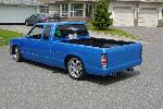 white primer...shaved body line,wipper cowl ducts,cab seems,gas cap, tailgate- dump truck bed lift up- cutlass mirrors,roll pan,frame painted gabber green,phantom grille, 92 toyota bumper with clear corner lights, euro tail lights, window tint,