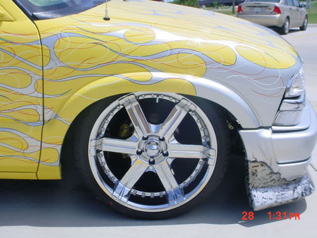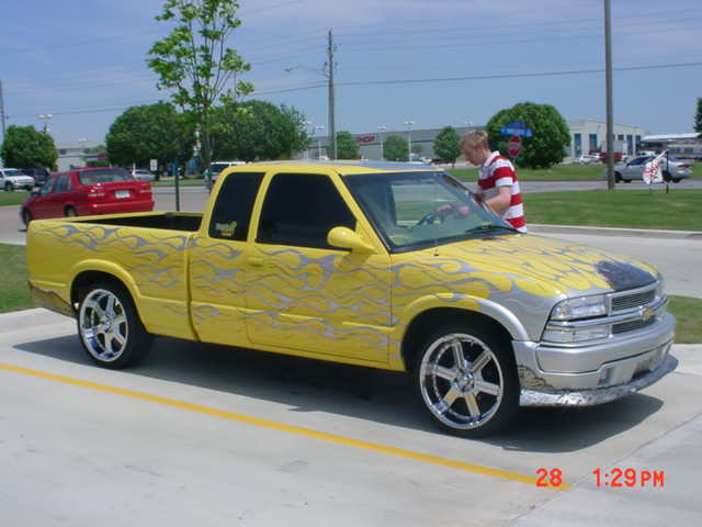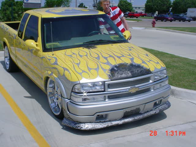 yellow with silver flames and hella skulls